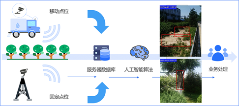 智能视频巡检机器人:通过车载机器人对巡查街道进行进行监控和智能识别,实时传输问题数据到后台。