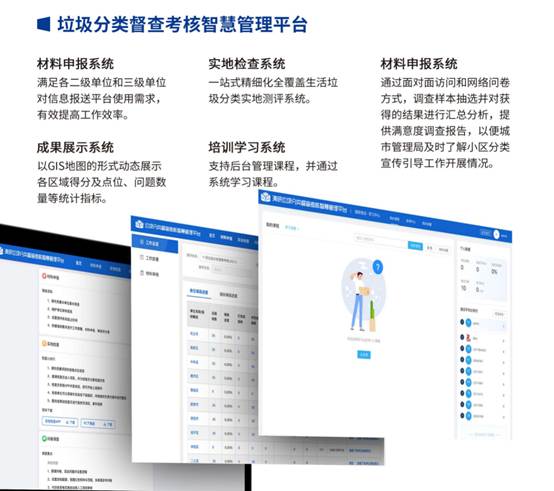 案例介绍:一站式精细化全覆盖垃圾分类材料申报、实地测评、成果展示,支持在线任务分配、实时采集、定位追踪、案件派发、数据分析等全流程闭环管理。