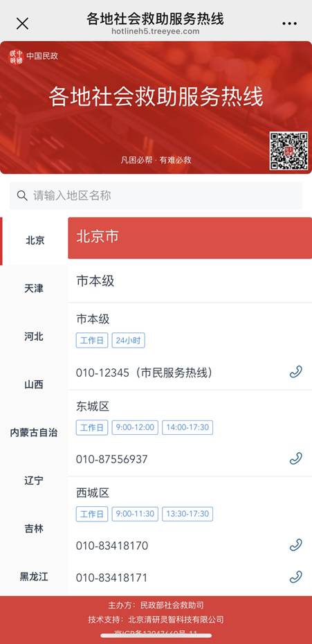 平台搭载全国各地救助热线,助力困难群众便捷查询,需求保障一键触达,筑牢民生保障安全底线。