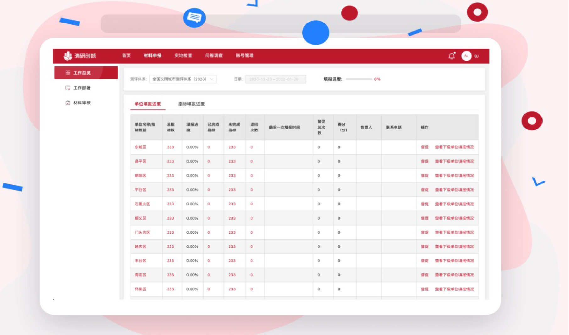 规范材料提报,智能提醒上报,进度精准管控,多维智展结果。