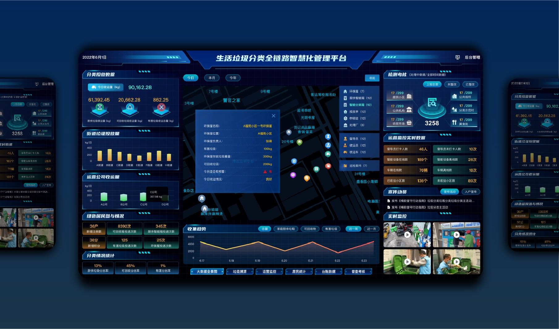 以全景图、多系统打通垃圾分类全链路数据通道,实现精准溯源与智能运营监控。