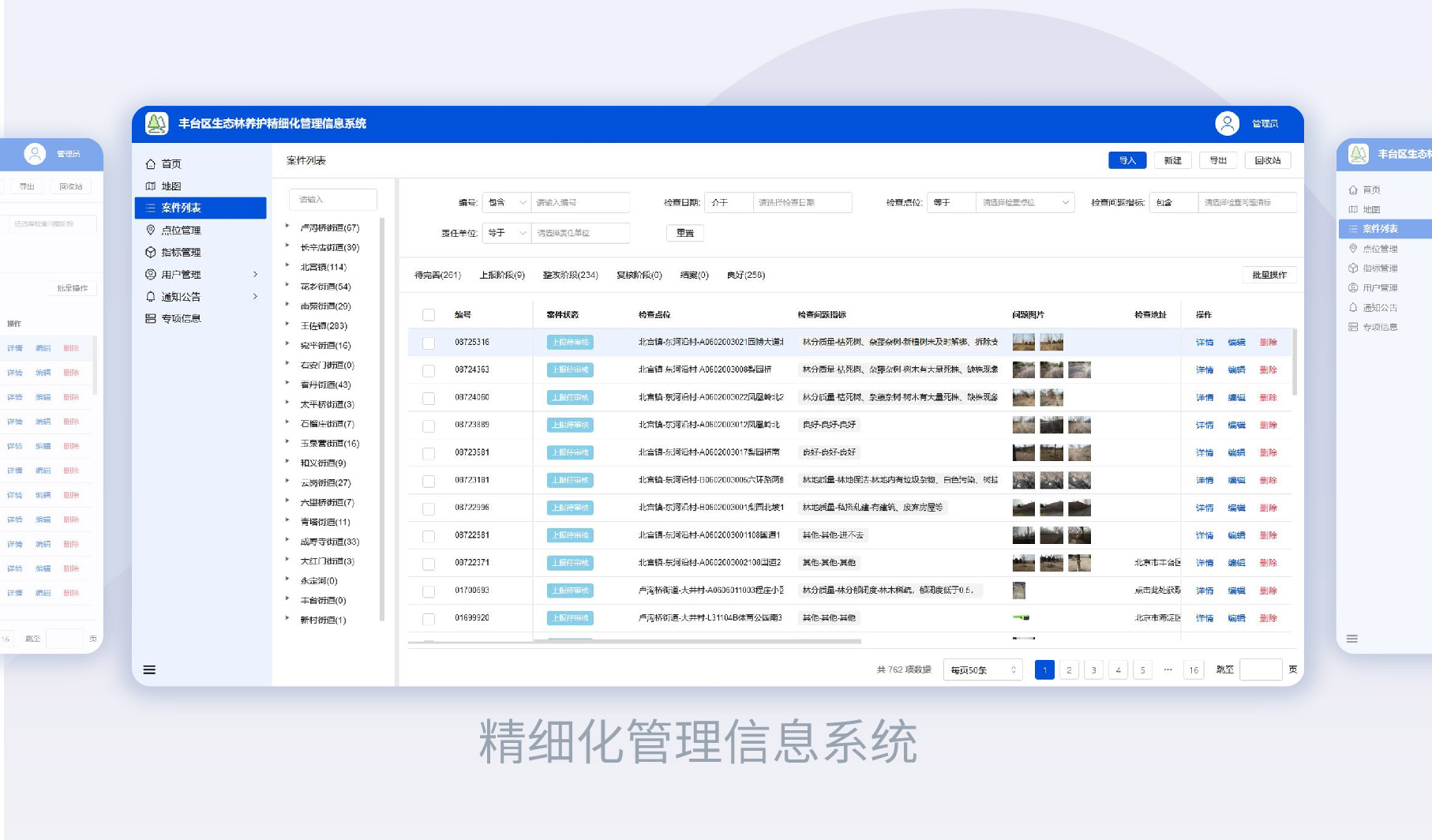服务于生态林地与城市绿地的养护巡护监管需求,通过遥感卫星及智能背包等地面巡检终端的数据融合,平台实现了地块管理、资金台账、巡查管理、问题处置、整改跟踪、分析预警等功能,广泛应用于北京市海淀区、丰台区、通州区等多地的林地绿地养护工作中。