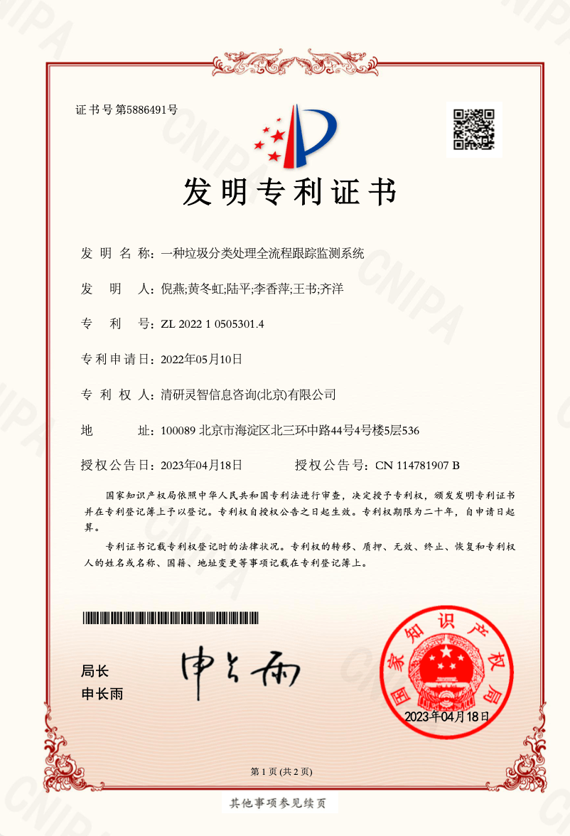 凭借深厚的研发实力和咨询创新的精神,拥有云平台的明察暗访系统、神经网络的遥感图像目标识别、垃圾分类处理全流程跟踪监测系统等货架发明专利17项。
